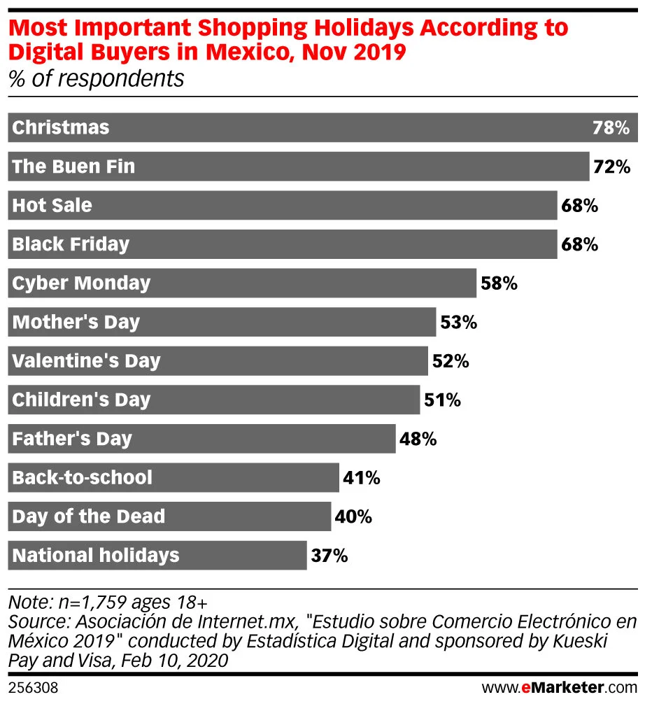 Hot Sale, an online shopping holiday promoted by the Asociación Mexicana de Venta Online (AMVO), is driving ecommerce sales in Mexico through the use of discounts and promotions. Since its launch in 2014, Hot Sale has become one of the most important shopping days in the country, after Christmas and El Buen Fin (or "The Good Weekend")—an annual shopping event that occurs the weekend before Mexican Revolution Day, which is observed on the third Monday of November.